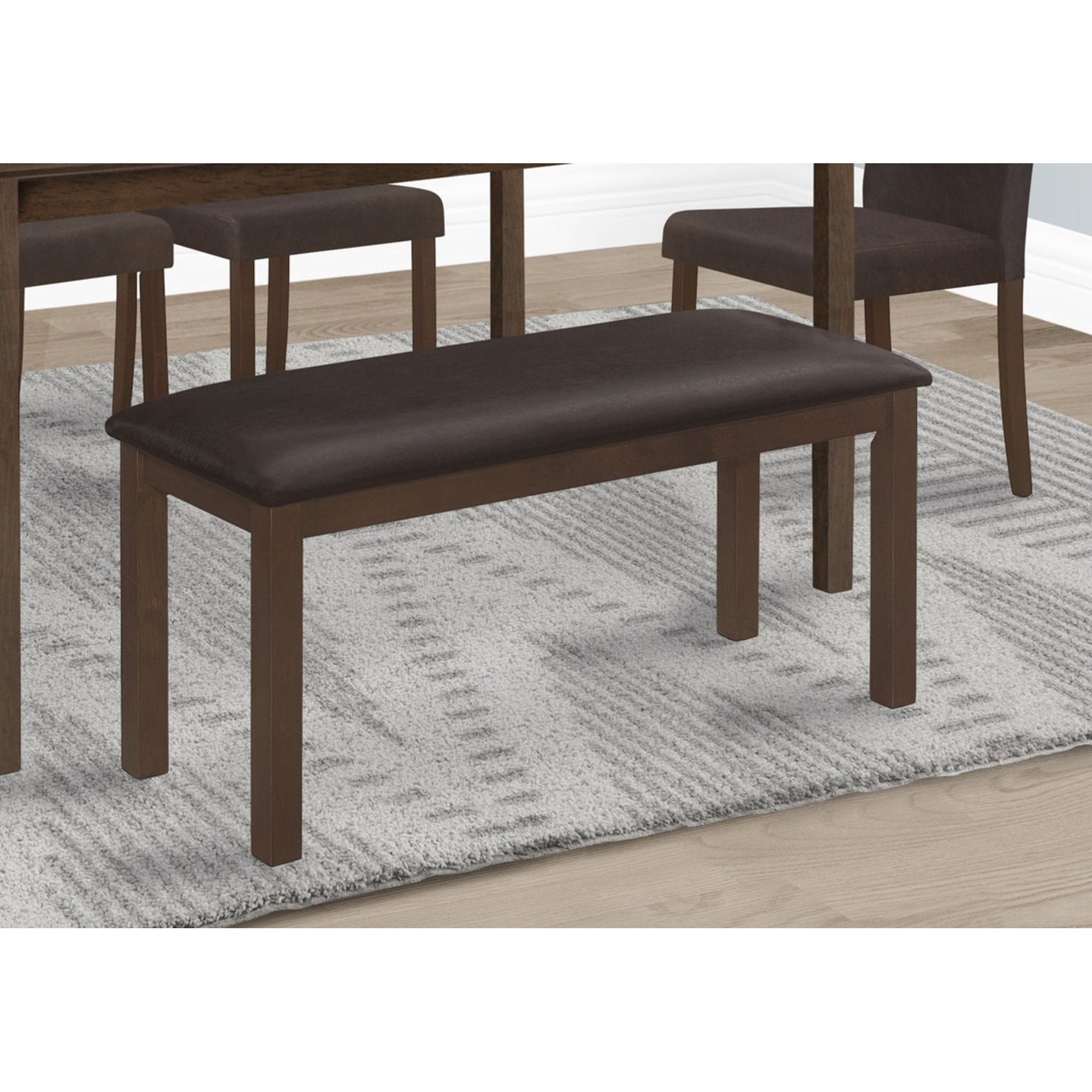 Apportez un nouveau look à votre table à manger avec ce banc rembourré de style transitionnel. Ce banc rectangulaire de 42 po est doté d'une assise rembourrée confortable en tissu d'aspect cuir brun foncé facile à nettoyer, ce qui en fait une option pratique pour les repas en famille. Soutenu par des pieds en bois épais et robustes au fini espresso brun foncé, ce banc sans dossier au design durable est parfait pour une salle à manger ou une cuisine décontractée. Facile à assembler et peu encombrant, ce banc sera un atout pour votre intérieur. Ce banc bénéficie d'une garantie limitée de 2 ans contre les défauts de fabrication.