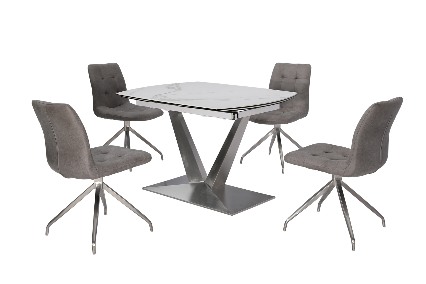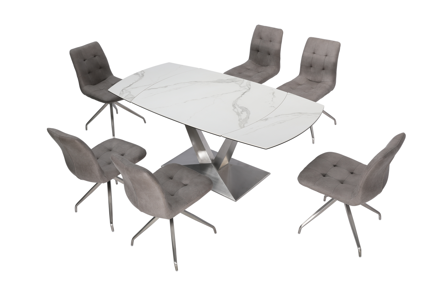 Cette chaise de salle à manger moderne et élégante est conçue pour offrir confort et style à votre espace de repas. Avec un dossier rembourré et un siège capitonné, elle assure une assise agréable tout en ajoutant une touche contemporaine à votre décor. Sa structure en métal brossé avec une base solide assure stabilité et durabilité, idéale pour un usage quotidien ou des dîners plus formels.