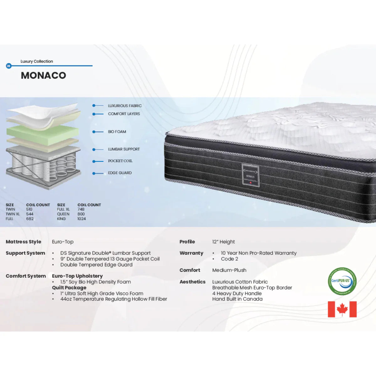 Expérimentez la fusion d'un confort somptueux et d'un savoir-faire méticuleux, vous invitant à vous détendre dans une oasis d'opulence qui établit une nouvelle norme pour le sommeil. Savourez une fermeté moyenne équilibrée qui vous enveloppe de confort, répondant à diverses préférences de sommeil. Le Monaco peut être expertement compressé pour un transport et une installation sans effort, apportant une élégance à votre chambre à coucher.