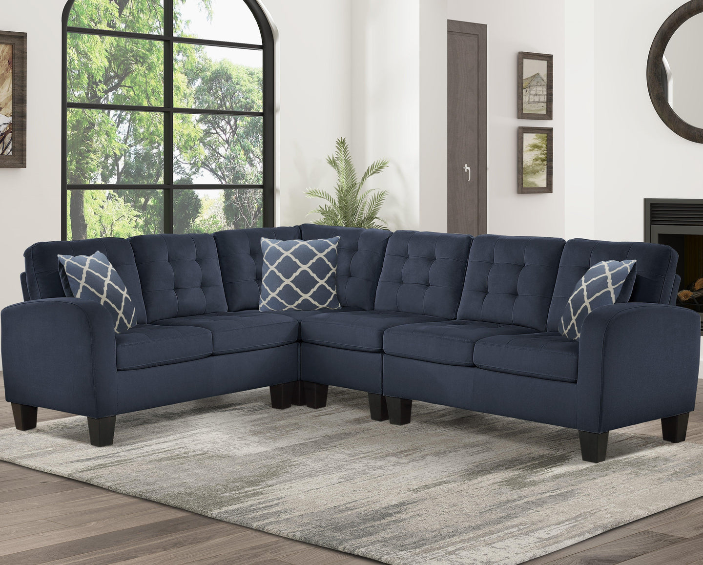 Une touche de style rétro offre un aspect propre et classique à votre maison contemporaine avec la collection Sinclair. La configuration réversible de la section permet un emplacement parfait dans votre salon, vous permettant de placer le côté plus long où cela a le plus de sens dans votre espace. Ce style de sofa très polyvalent disponible en gris ou en bleu saura s’introduire parfaitement dans votre décor.