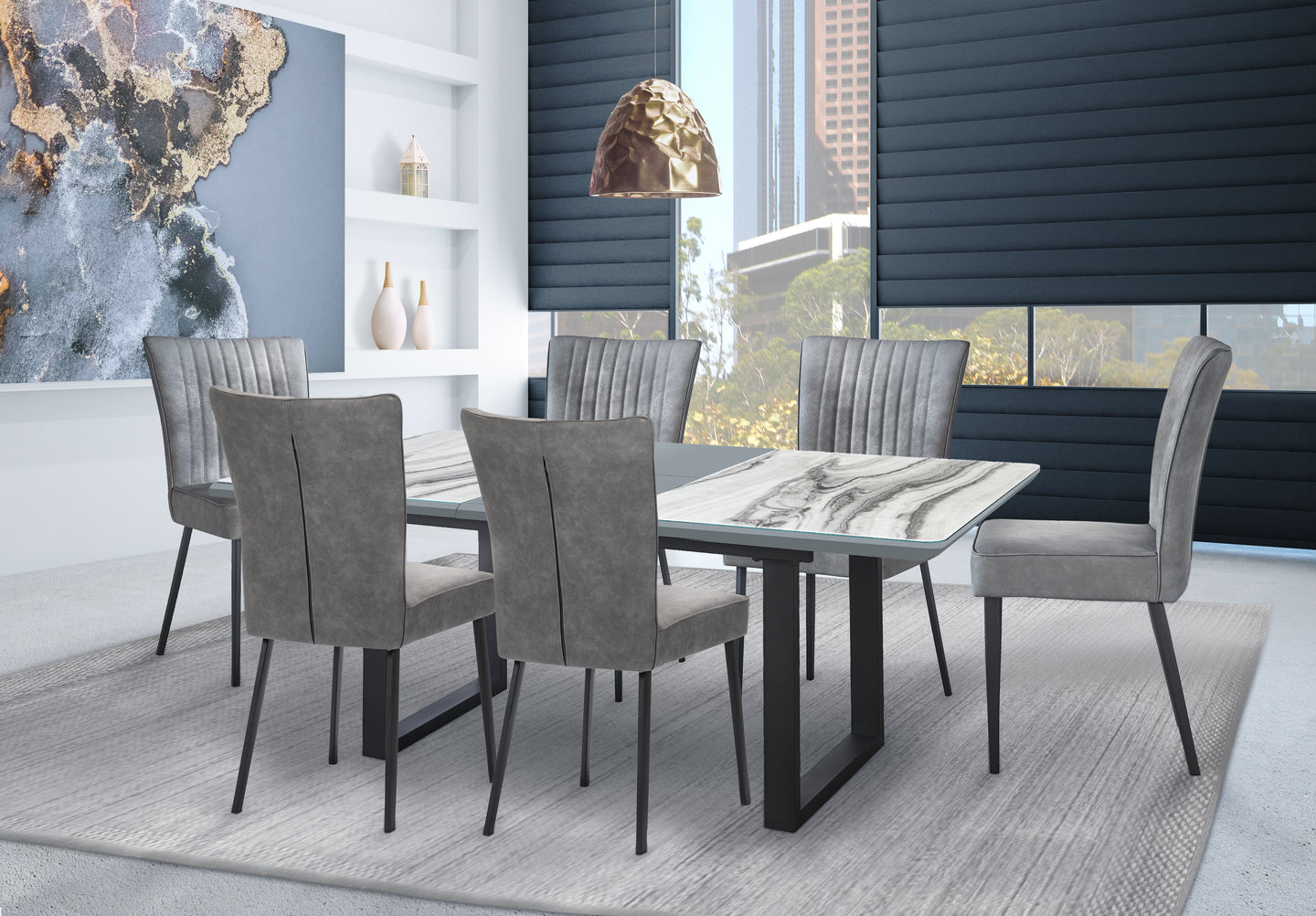 Inspirée des influences industrielles, cette table de cuisine en marbre gris et blanc affiche un style contemporain industriel élégant. Son plateau en marbre artificiel protégé par du verre lui donne une allure lumineuse tout en étant facile à nettoyer. La rallonge papillon et les pieds en métal noirs ajoutent une touche de contraste. Assemblage requis.