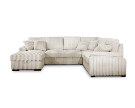 Ce sofa-lit sectionnel en velours cotelé beige est à la fois élégant et confortable. Avec ses dimensions optimales, il s'adaptera parfaitement à votre espace de vie et offrira un repos agréable. Fabriqué avec des matériaux de qualité, il est à la fois durable et luxueux.